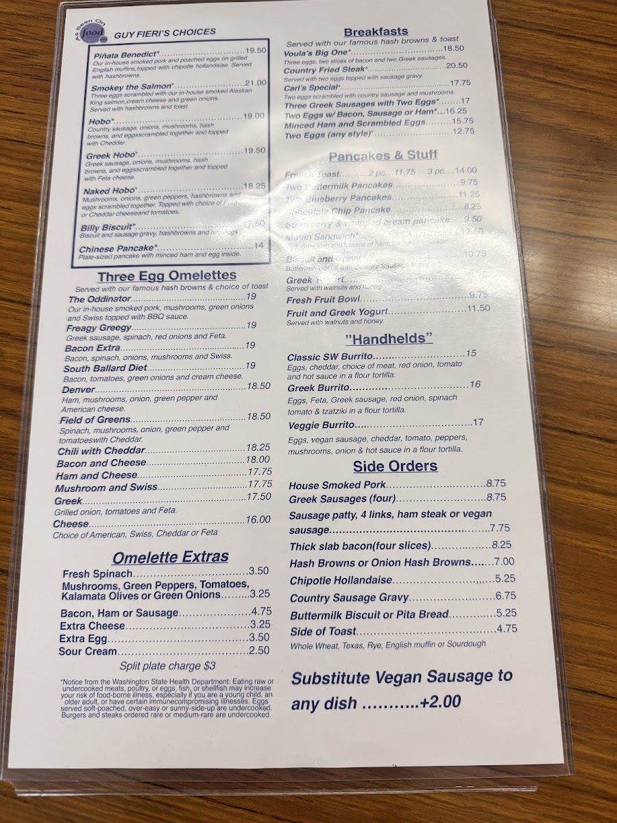 Greek sausage, onions, mushrooms, hash browns, and eggs scrambled together and topped with Feta cheese.